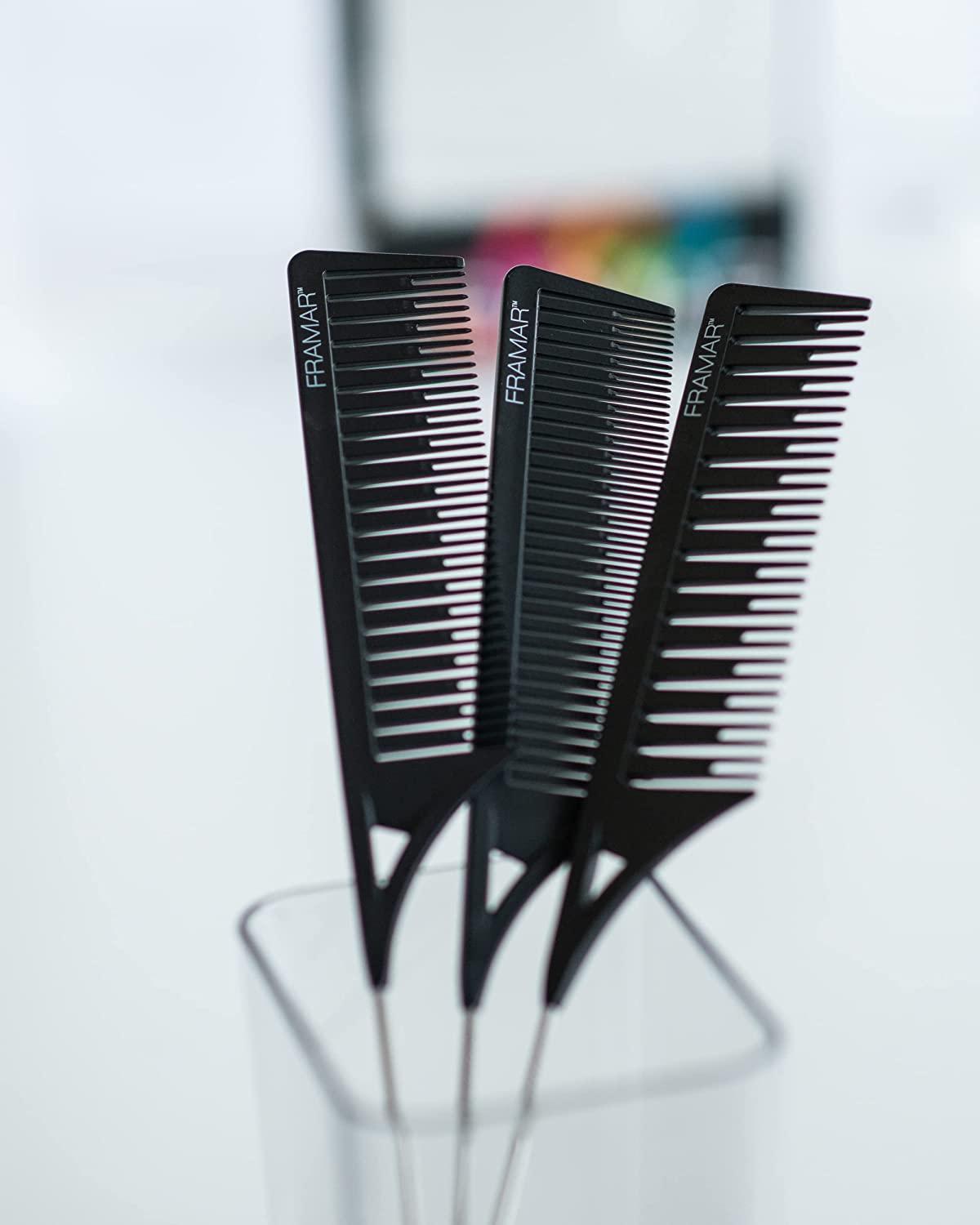 Framar Dreamweaver Highlight Comb Set Combs For Hair Stylist Highlighting Comb Hair Dye Comb Hair Highlighter Comb With Metal Pick Balayage Comb Black